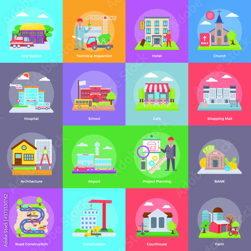Stay home scene set, flat vector isolated illustration. People working remotely, communicating, dancing using video conference technologies, doing yoga, studying with online teacher in quarantine.