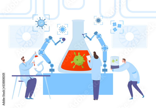 Stock exchange, vector flat style design illustration. Candlestick chart, tiny characters brokers traders sell or buy shares using laptops. Stock market concept for web banner, website page etc.