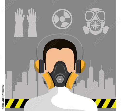 Vector layered paper cut style man silhouette in face mask, city buildings and industrial plant with smoking pipes. Stop air pollution, save environment, ecology concept.