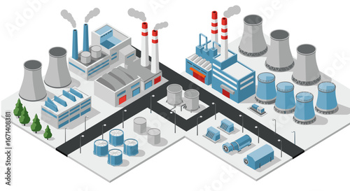 Ecology pollution infographics, vector flat isometric illustration. Environmental problem. Industrial plant smoke, household waste, toxic car exhaust gases. Stop nature pollution.