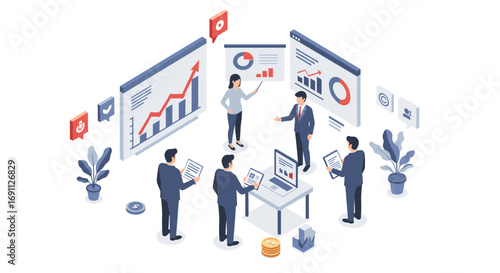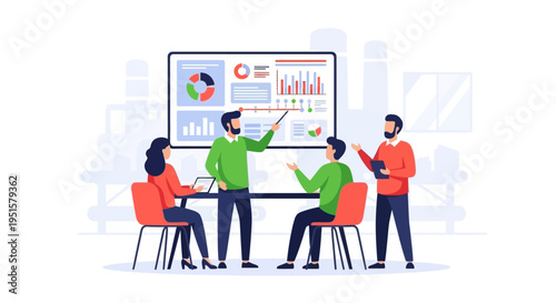 Stop pollution vector concept illustration. People with placards, slogans, banners and megaphone protesting against air and water pollution by industrial plants smog and waste discharged into rivers.