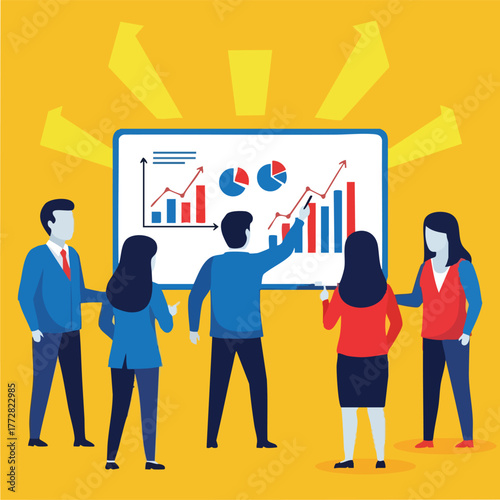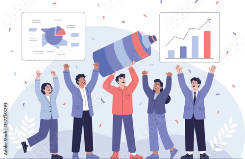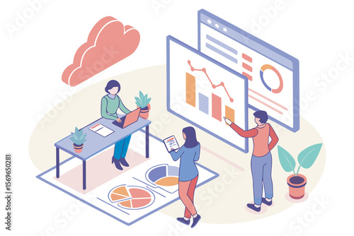 Stop violence sign and group of activists, protesters with placards, flags, flat vector isometric illustration. Stop violence protest.