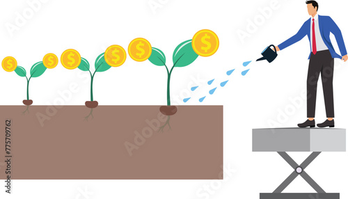 Stormy, windy and rainy weather concept vector illustration. Young man caught in heavy rain with thunderstorm and lightning, flat style design.