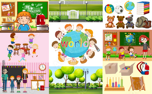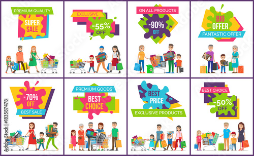 Vector street food and drink establishment set. Restaurant or cafe, coffee bike, fast food cart, ice cream truck with sellers and buyers. Flat style design.