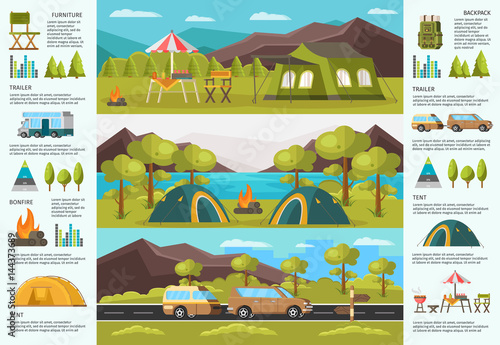 Street food festival concept vector banners. People sell food from stalls in park. Street cafe concept.