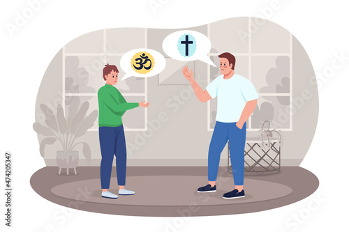 Street hooligans, graffiti painters wearing hoodies and face mask damaging public building, flat vector illustration. Street vandals painting brick wall with paint spray. Vandalism.