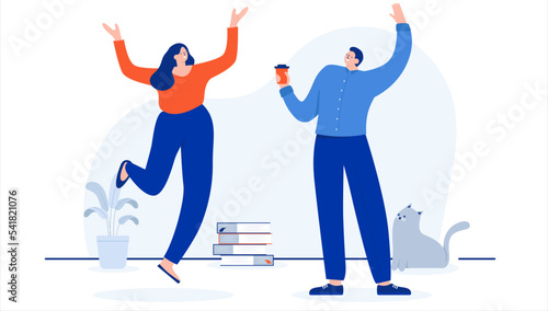 Street hooligans, graffiti painters wearing hoodies and face mask damaging public building, flat vector illustration. Street vandals painting brick wall with paint spray. Vandalism.