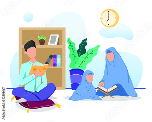 Tired stressed dad working on computer while naughty kid preventing him doing his work, flat vector illustration. Remote work, freelance. Parental stress, parenting problems when raising children.
