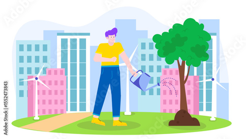Vector illustration of schoolboy with backpack. Student concept design element in flat style.