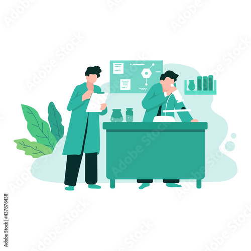 Vector illustration of school children boy and girl sitting at the desk in classroom. Students at lesson concept design element in flat style.