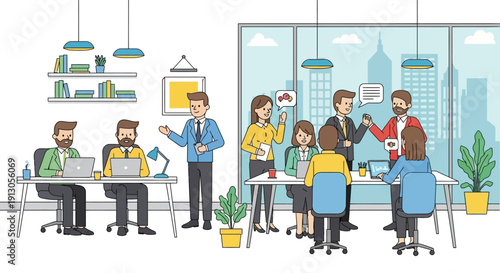 Students listening to school teacher with pointer and chalk standing at chalkboard in classroom, flat vector illustration. Physics lesson, school education, knowledge.