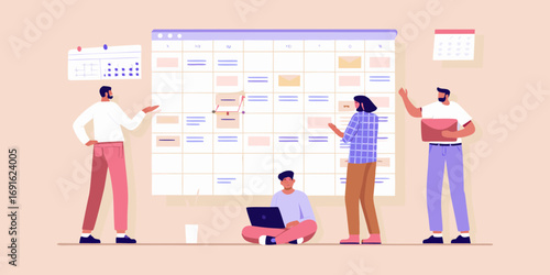 Students listening to the teacher giving lecture on physics in auditorium, flat vector illustration. Knowledge. Exact science course, class. University education.