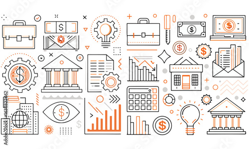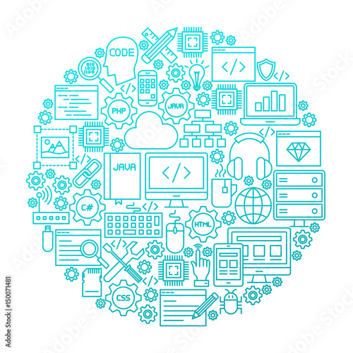 Studies concept vector illustration. Modern thin line art flat style design element in the shape of cloud with educational symbols, icons for website banners and printed materials.