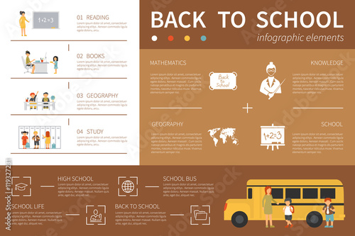 Vector set of horizontal banners with School, Study and Information line art flat style design elements, web templates.