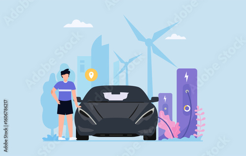 Study at the university, vector flat illustration. Huge planet Earth globe with graduation hat and micro characters students with book, pencil, calculator. Global study, education, knowledge.