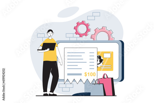 Study concept vector flat style design illustration. Huge planet earth globe and micro characters students carrying pile of books, calculator. Education course, study abroad.