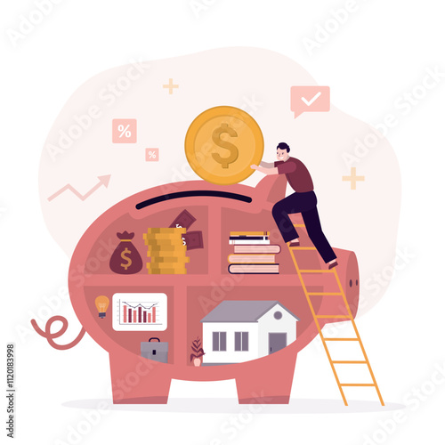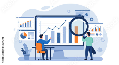 Huge tablet and tiny characters students, vector illustration. Online learning, distance education, webinar concept for web banner, website page etc.