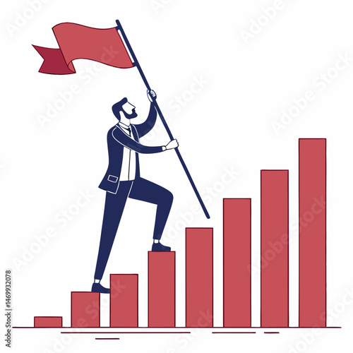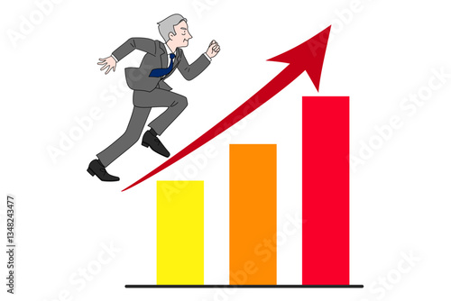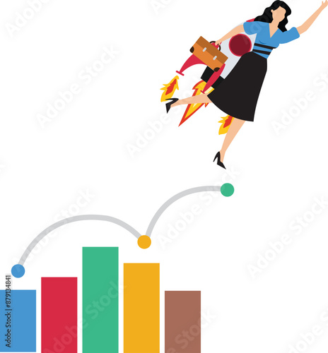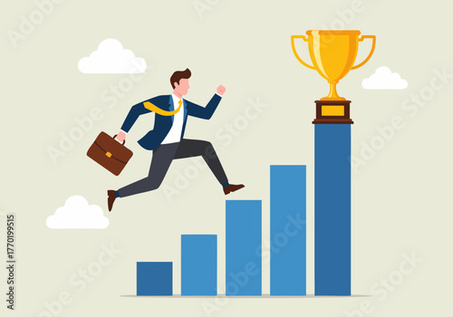 Successful business people vector flat illustration isolated on white background. Businessman characters superhero, winner celebrating success with award, climbing up bar chart, planning to reach goal