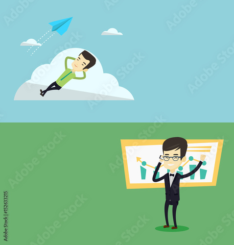 Successful businessman drinking cocktail and taking a rest on a bunch of money. Business vector concept illustration in cartoon style.