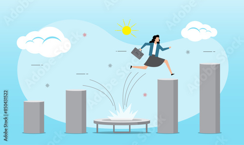 Suitcase, passport, late for flight people catching airplane, flat vector illustration. Time to travel, flight tours, travel by plane.
