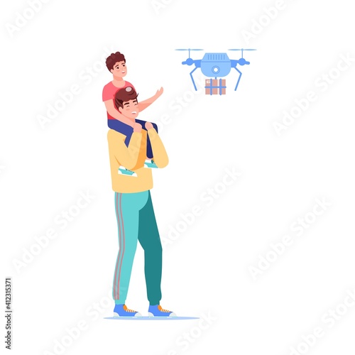 Man carrying summer fresh fruits and corn, vector flat illustration isolated on white background. Summer vacation, summertime, travel.