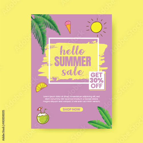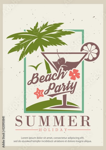 Summer beach party grunge typography poster design template, vector illustration in retro style. Night club disco party concept for banner, flyer.
