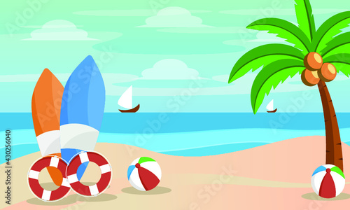 Summer beach top view cartoon vector illustration. Nature paradise, touristic seaside luxury resort and marine travel