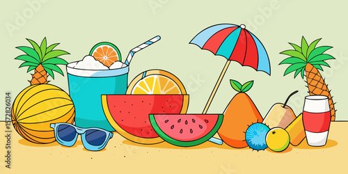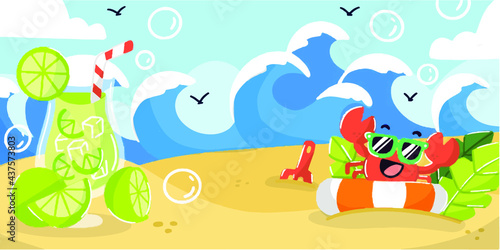 Summer drink beach bar menu vector design illustration. Party on tropical seacoast during vacation time with alcohol beverage poster. Vibrant brochure abstract pattern