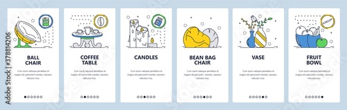 Summer travel web site and mobile app onboarding screens. Menu banner vector template for website and application development. Summer vacation planning, travel map, beach accessories. Thin line art.