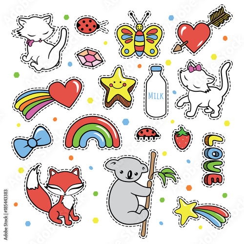 Summer seamless pattern. Vector hand drawn animals bunny, squirrel and fruits pineapple and slice of watermelon.