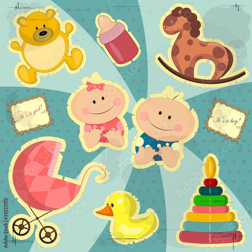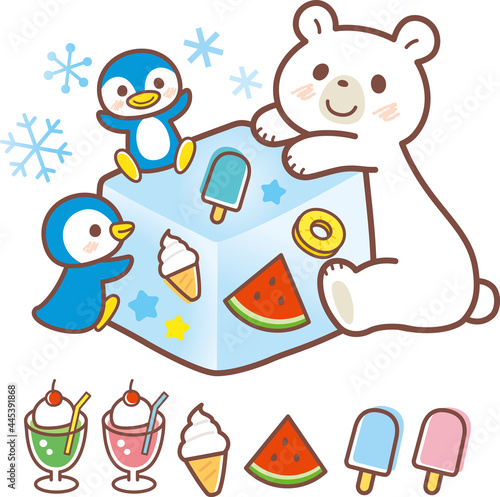 Summer seamless pattern. Vector hand drawn fox in sun hat with sunglasses, coconut milk, suitcases and slices of watermelon.