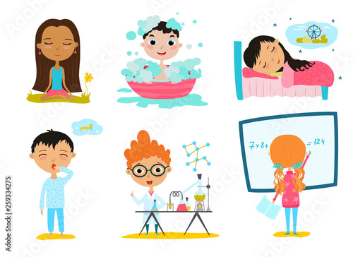 Sunscreen application steps, flat vector illustration. Guide how to use sunblock cream before going in the sun. Sunburn protection procedure. Face and body skin care routine.