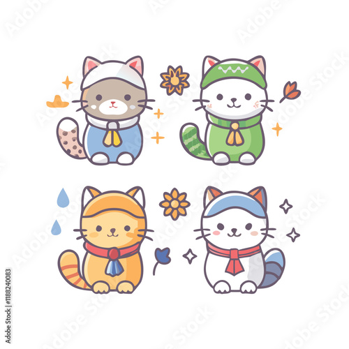 Superhero animals. Vector illustration isolated on white background. Cute little raccoon, rabbit, bear, owl, fox, squirrel and hedgehog in super hero costumes