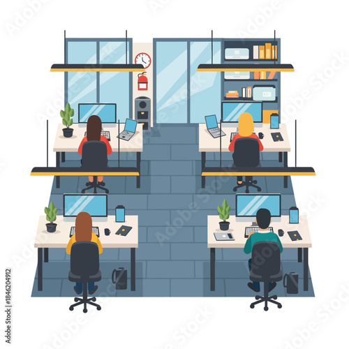 Supermarket entrance with lockers, cashier desk. People buying food products, paying for purchases, flat vector illustration. Shoppers with shopping basket, trolley. Food store, groceries.