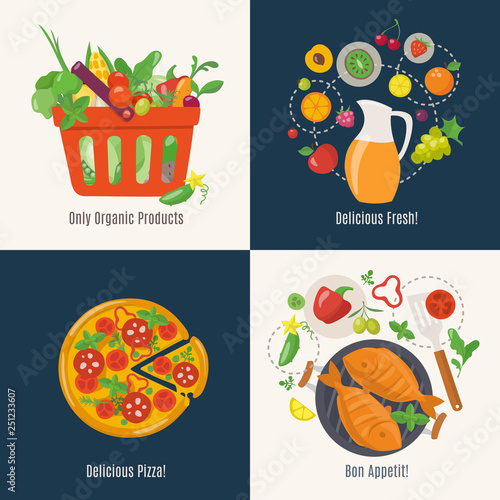 Supermarket shopping basket full of vegetables and fruits, vector illustration in paper art style. Fresh vegetables poster, banner design template.