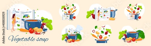 Supermarket shopping basket full of vegetables and fruits, vector illustration in paper art style. Fresh vegetables poster, banner design template.