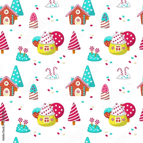 Sweet candy icon set. Vector illustration isolated on white background. Sweets, lollipops, candy canes, sweet houses.