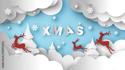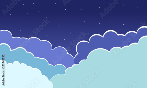 Vector layered paper cut style moonlit starry night sky with cute sheep jumping over fence. Sweet dreams concept for card, banner, flyer etc.
