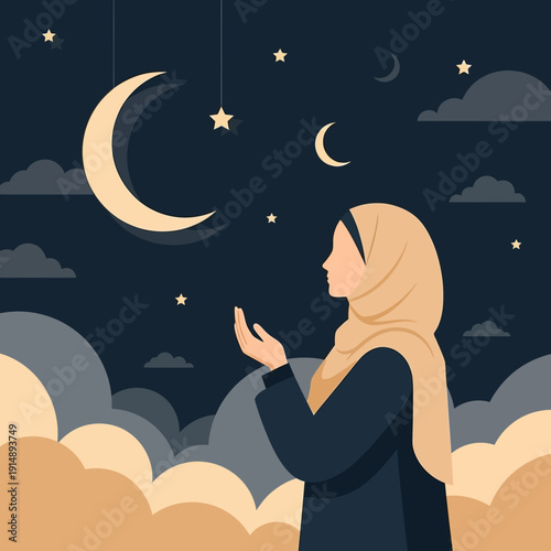 Vector layered paper cut style starry night sky with Great Bear constellation, crescent moon and portrait of beautiful woman with closed eyes. Sweet dreams concept for card, banner, flyer, poster etc.