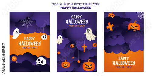 Sweet dreams vector website template, web page and landing page design for website and mobile site development. Layered paper cut style starry night sky with cute sheep jumping over fence. Insomnia.