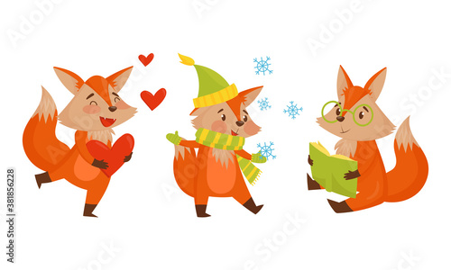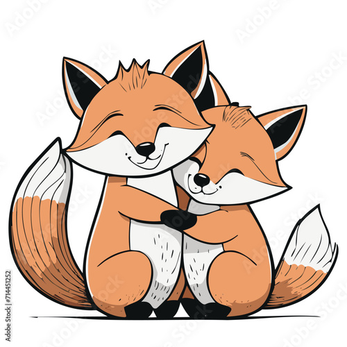 Sweet heart adorable animal family vector. Red fox couple in love icon. Woodland romantic pair for wedding greeting postcard. Mascot character with flower isolated on white background