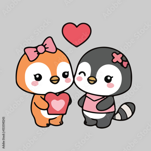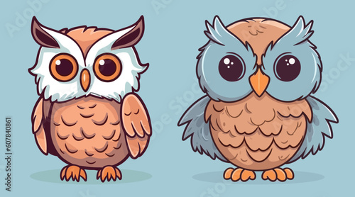 Sweet heart adorable bird family vector. Owl couple in love icon. Woodland feathered romantic pair embracing for postcard greeting isolated character on white background