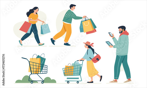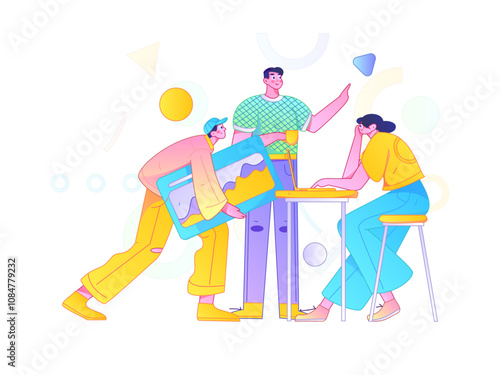 Tiny happy people making big tasty cherry cupcake, vector illustration. sweets production, confectionery, pastry composition for web banner, website page etc.