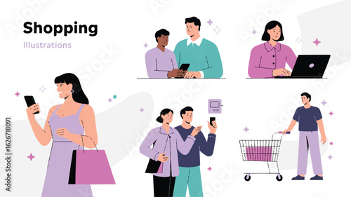 Tailor master taking measurement and fitting of pretty bride for beautiful wedding dress vector illustration. Professional atelier studio interior background