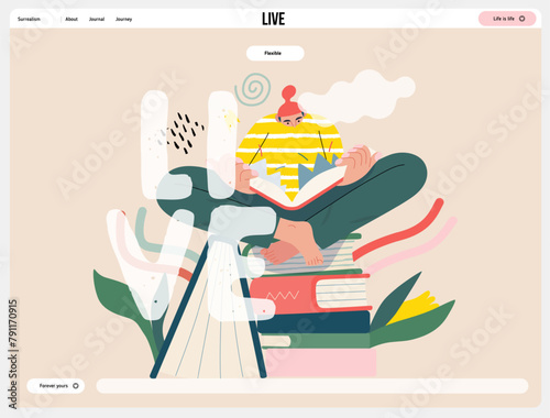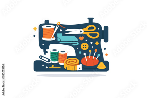 Tailoring vector website template, web page and landing page design for website and mobile site development. Sewing machine, dummy, thimble, pins, pincushion, thread, iron, tape measure.