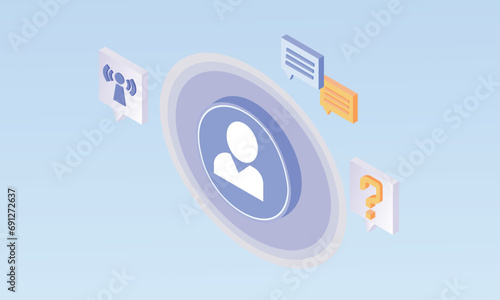 Target media, landing page design, website banner template, flat vector isometric illustration. Digital advertising campaign.