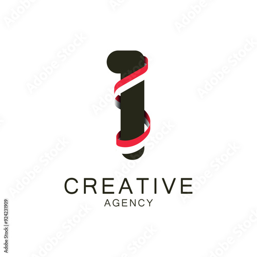 Tattoo studio and barber shop label, logo vector template. Realistic barber pole, two black crossed tattoo machines and red ribbon on white background.