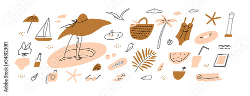 Tea ceremony equipment set vector illustration. Traditional japanese and chinese tea utensils and accessories, teapot, ceramic cup, spoon. Hand drawn banner and poster.