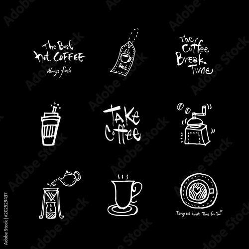 Tea emblem, logo, badge and label set, vector hand drawn illustration in retro style. Tea house shop cafe vintage hand lettering typography.