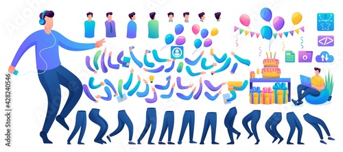 Team flat vector. Business people and teamwork concept. Office man and woman partnership. People group running together holding huge letter. Happy corporate character